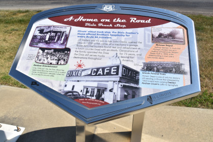 McLean is home to the historic Dixie Truck Stop, possibly the very first truck stop on Route 66. First opened in 1928 by J.P. Walters and John Geske, in a mechanic's garage with a single counter cafe and barstools, the truck stop has grown over the decades, but continues its old-fashioned, all-American eatery vibe with true southern hospitality. It was originally named Dixie Trucker's Home but over the decades it has changed names to Dixie Truck Stop and now The Dixie Travel Plaza. Later Charlotte "C.J." Beeler (John's daughter) worked it with her husband Chuck Beeler. It only closed for one day between 1928 and 2003 -because of the fire that burned down the original restaurant building in 1965. They moved it to a cabin and rebuilt an even larger restaurant. The new building opened in 1967 and could seat 250 and included sleeping rooms, laundry and a barber shop. It was a family-run operation until it hit bad times in 2003 and was sold to a corporation; it is still operating.