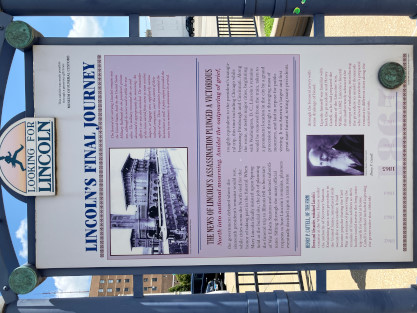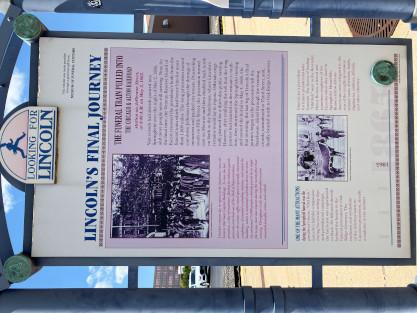 The dual panel Lincoln's Final Journey. The sub-heading states "The funeral train pulled into the Chicago and Alton Railroad station on Jefferson Street at 8:40 A.M. on May 3, 1865."