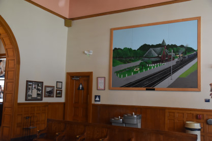 The station is decorated with a small mural atop the ticket office which features a route map of the post-1947 Gulf, Mobile and Ohio Railroad and the state seals of Alabama, Illinois, Kentucky, Louisiana, Mississippi, Missouri and Tennessee. The mural is the work of Louis Grell of Chicago. In a 2010–2011 project, authorities supervised the railroad station's comprehensive refurbishment and overhauled elements included the GM&O mural, trackside landscaping, passenger seating, handicapped accessibility, parking lot repaving and a new station roof. The $714,500 project was financed by the City and Amtrak with additional stakeholders being Union Pacific Railroad, which owns the track and platform, and the Illinois Historic Preservation Agency, which reviewed project plans to ensure that the station's historic elements were preserved.
