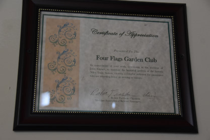 Certificate of Appreciation To the Four Flags Garden Club.