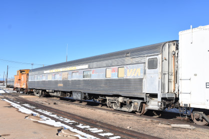 American Steel Foundries modified dorm-lunch counter-lounge 1965, ex. Chicago and Eastern Illinois 601, exx. Chicago and Eastern Illinois 302, nee Chicago and Eastern Illinois 90, builder and year unknown.