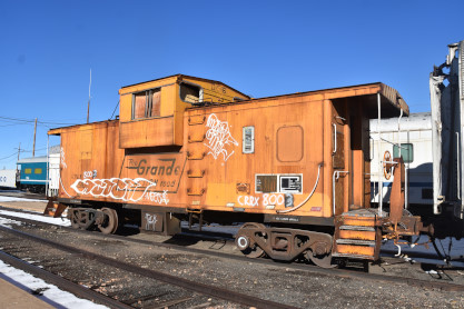 Colorado and Wyoming caboose 103, built by the Colorado and Wyoming in 1953, from an ore car and converted to Loco Simulator, and numbered 100.