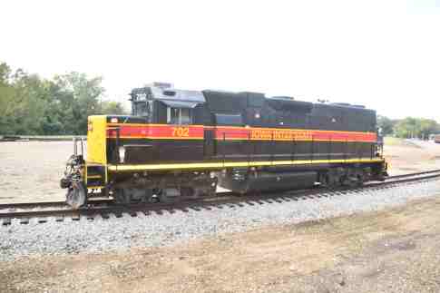 Iowa Interstate GP38-2 702, ex. Locomotive Leasing Partners 2203, exx. Union Pacific 412, exxx. Union Pacific 1912, exxx. EMD Leasing 744, exxxxx. Conrail 7944, nee Penn Central 7944, built by Electro-Motive Division in 1972.