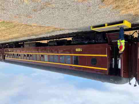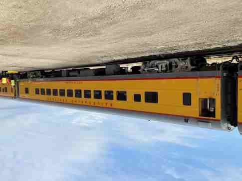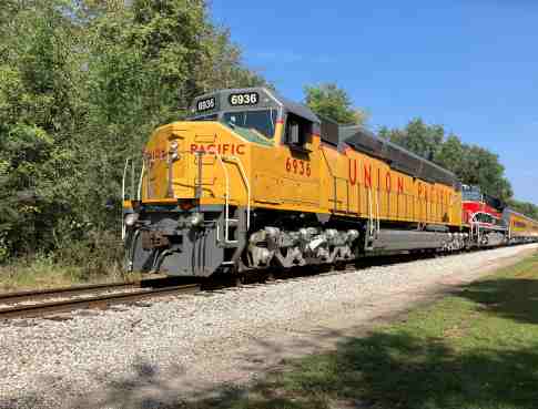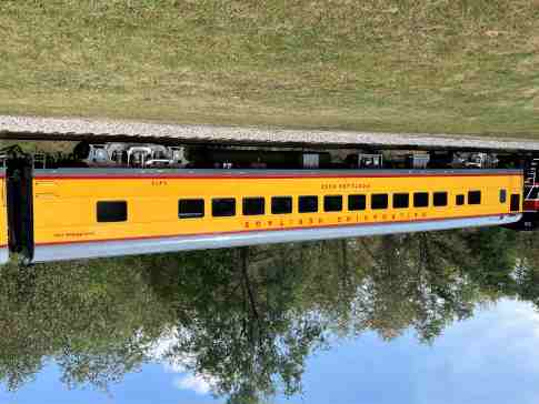 Railroading Heritage of Midwest America coach 5480 "Sunshine Special", ex. Union Pacific Company 5480 "Sunshine Special", nee Union Pacific 5480, built by American Car and Foundry in 1954. It was named to commemorate the Missouri Pacific train that ran between St. Louis and each of the large cities in Texas, from December 1915 to August 1948, when the train was replaced by the Texas Eagle. It was donated in April 2022.
