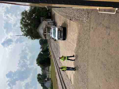 Iowa Interstate employees watching our train pass through the crossing.