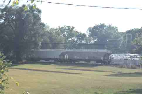 Just before Colona, we had to wait for a BNSF freight train on its way to Galesburg. It is seen from my coach window.