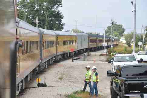 Iowa Interstate employees watching as we left Bureau Junction.