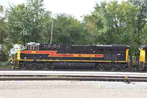 Iowa Interstate ES44AC 513, built by General Electric in 2010, painted in a Rock Island heritage livery.