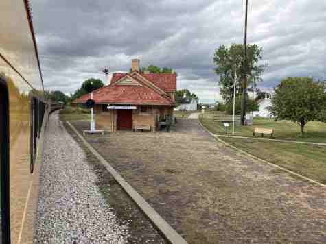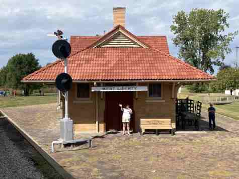 Passing the diagonally-centered West Liberty depot at Milepost 221.3. The town was named for Liberty, Ohio, with the word "west" added as it was west of Ohio.