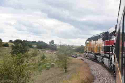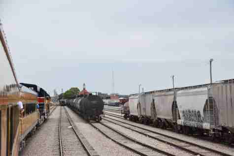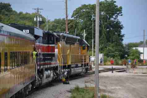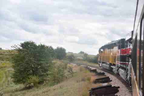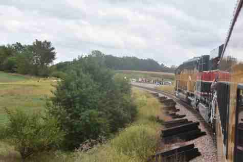 Tickets for the streamlined, air-conditioned coaches sold out and the regular coaches were almost sold out. The consist was Union Pacific DD40AX 6936, Iowa Interstate ES44AC 513, RRHMA coach "Portland Rose", RRHMA coach "City of Salina", RRHMA coach "Katy Flyer", RRHMA coach "Sunshine Special", RRHMA baggage car 904271, IAIS coach 1646, IAIS coach 1684, IAIS coach 1731, IAIS coach 1699 and IAIS coach 1658.