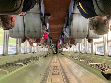 Back on board, each seat in former Union Pacific coaches retains their unique Union Pacific upholstery.