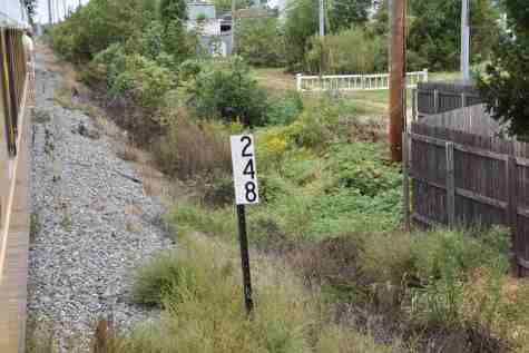 The sign for Homestead Wye, Milepost 256.6. The siding is 3,000 feet.