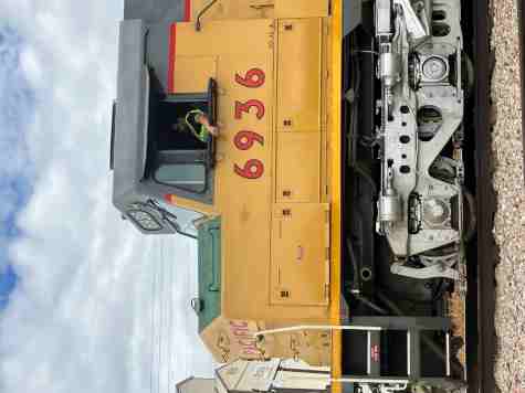 Railroading Heritage of Midwest America DDA40X 6936, nee Union Pacific 6936, built by Electro-Motive Division in 1971. It operated in regular freight service from 1971 to mid-1980 then was stored at Yermo, California, until February 1984 and operated in regular freight service, along with 25 other 6900-class locomotives, from March 1984 through May 1985. It was the last operating DDA40X in service on the railroad and removed from regular freight service on May 6, 1985 then transferred to the Heritage Fleet at Cheyenne and first used in excursion service on May 24, 1985. Union Pacific 6936 was last used in special service in July 2015 for the Cheyenne Frontier Days special, then since it could no longer operate over Union Pacific tracks in the leading position until Positive Train Control equipment was installed, the decision was made to donate it and other equipment to RRHMA in April 2022.