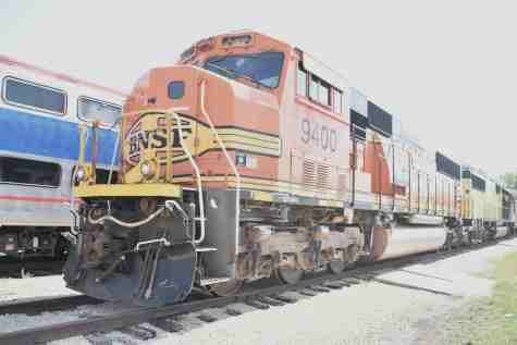 Burlington Northern Santa Fe SD70MAC 9400, nee Burlington Northern 9400, built by Electro-Motive Division in 1993. It was the first production locomotive used in freight service in America to be built with AC traction motors.