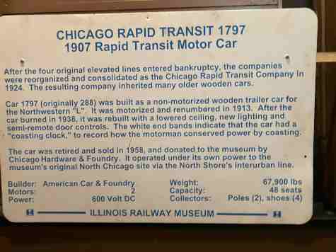 Chicago Rapid Transit wood-bodied "L" car 1797, ex. Chicago Hardware Foundry in North Chicago 1958-1964, exx. Chicago Transit Authority 1947-1958, exxx. Chicago Rapid Transit 1924-1947, exxxx. Chicago Elevated Railroad 1913-1924, nee Northwestern Elevated Railroad 288, built by American Car & Foundry Company in 1907.