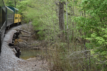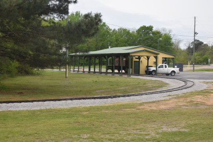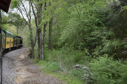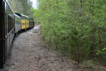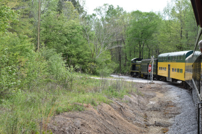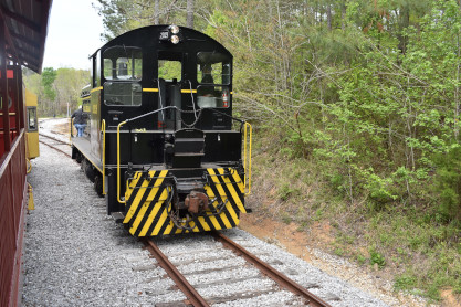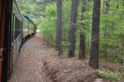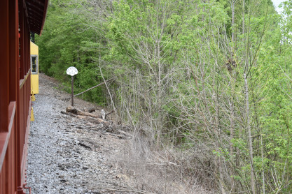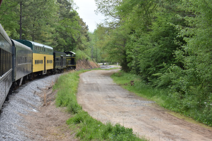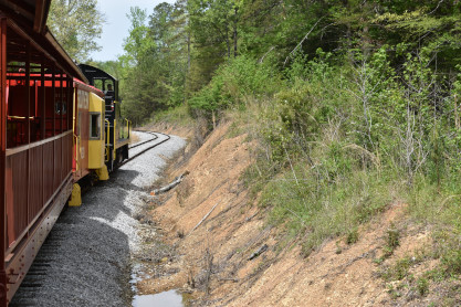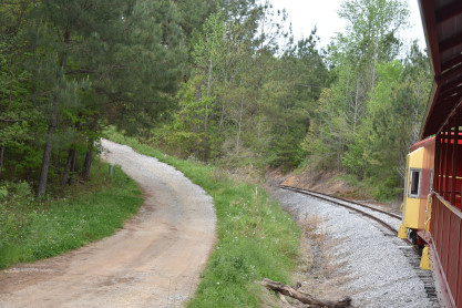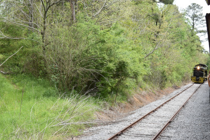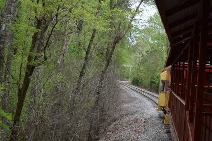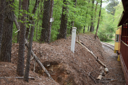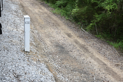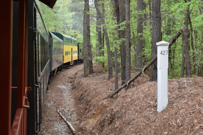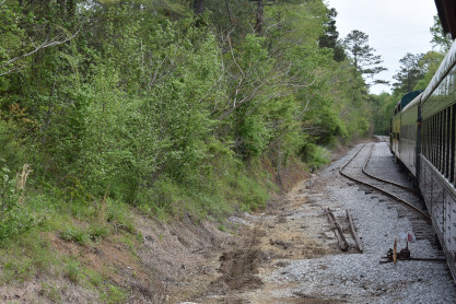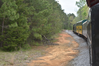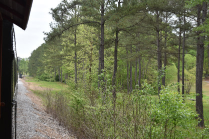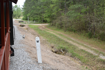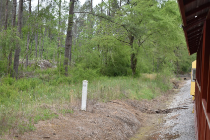 Concrete milepost 430. We went to the end of the line where there was a wooden barricade and the train could not go any further. At some point, the Heart of Dixie Railroad would like to extend to Shelby but three bridges need to be rebuilt and it would be a major undertaking and expense. The train returned to Springs Junction where Elizabeth then joined me in the open car.