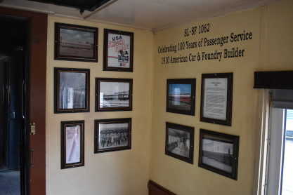 David Brewer wanted us to have as full an experience of the railroad as possible. So he offered cab rides or a ride on the train. Elizabeth took him up on the cab ride offer for the outbound trip and in the passenger cars for the return trip. I chose to ride in the train for the full trip so as to be able to experience each of the cars in the consist. Unfortunately, the bi-level car was locked. So Elizabeth happily walked up to the engine and I met my car host, Allan, who let me on to the train and we had the historian, as well as David, on the train. The train left and I started to explore.