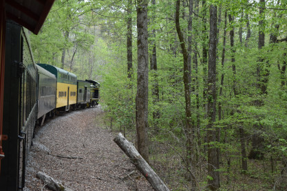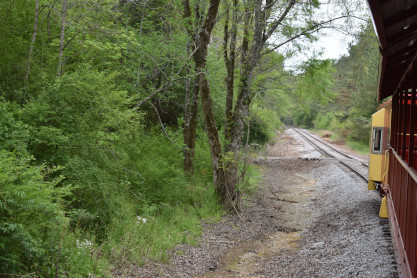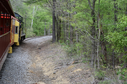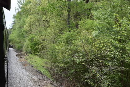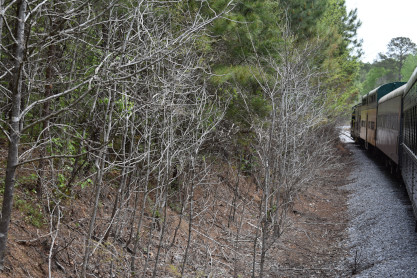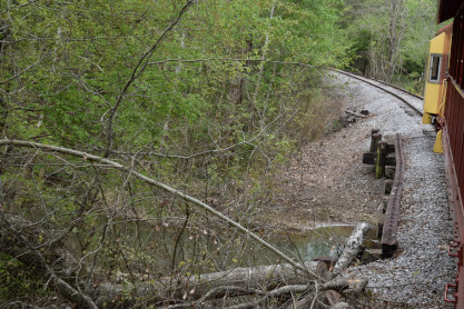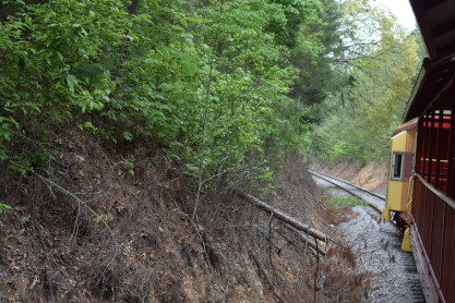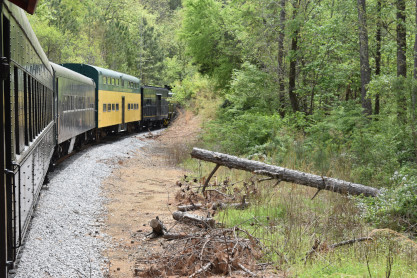 The train continued to run into the forest until we had to stop due to a tree across the tracks.