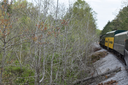 Elizabeth had a first-hand view of this experience. The engineer first tried sawing the branches which was partially successful but the larger limbs required the use a chainsaw. This delayed the train about ten minutes but he was successful so the train was able to pass through and continue.