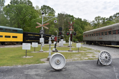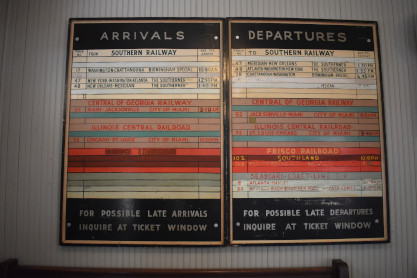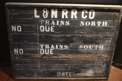 An original Louisville and Nashville timetable board. This was the end of our station tour. We went outside to the signal garden where my lovely wife Elizabeth pressed the button to activate them all which was quite something to see and hear.