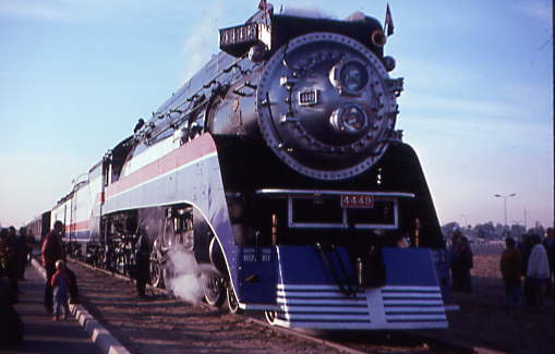 The Southern Pacific 4449 sitting in front of the Sacramento train station after the train had been wyed. 5/27/1989