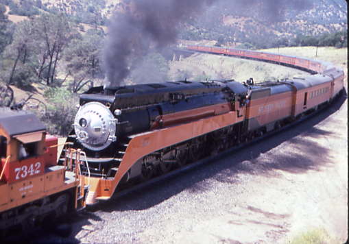 During Railfair 1991 during the pageant, the Southern Pacific 4449 and Union Pacific 3985 would come together each day to recognize the completion of the Transcontinental Railroad on May 10th, 1869. It was a real well done pageant put on by the California Railroad Museum. 5/11/1991