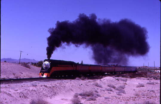 The Southern Pacific 4449 took us into California and we stopped at Araz for a photo runby. 6/19/1984