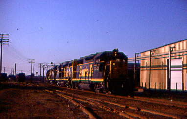 Santa Fe 5590 with a B&O renumbered 4049 coming through Santa Ana in 1984.