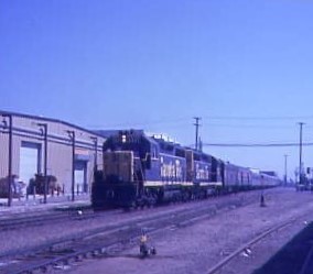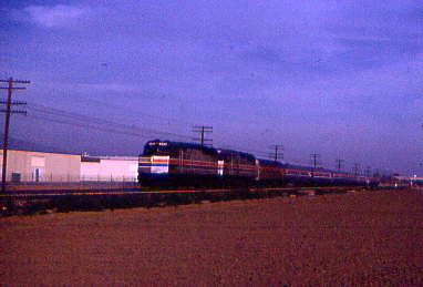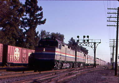Amtrak 574 coming into Santa ana at Fairhaven Ave in 1984.