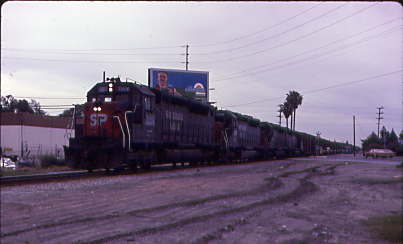 Southern Pacific 3206 heading west at this point through Buena Park on the way to West Colton in 1984.