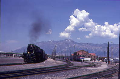 Due to slow trackage in Ogden, we arrived at Ogden Depot before the steam train and were able to photograph him passing the depot, where the Desert Wind awaited its nightly departure.