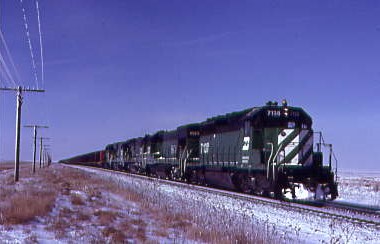 Along the way at Greenville was Burlington Northern 7135 East running beside the ice-covered wires. We arrived at Dalhart and staked out the Burlington Northern/Southern Pacific crossing to catch a few trains then drove US 54 south back into New Mexico and caught up to a westbound train. At Tucumcari, we returned to Interstate 40 driving west to Grants and the Motel 6 for the night. The next day, we railfanned our way home, ending this winter trip to Colorado.