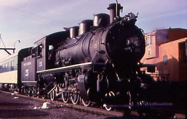 After a few pictures, the steam engine with its white flags slowly reversed to its train letting out steam from the cylinders as it moved. Our consist was McCloud 2-6-2 25 on the point, Southern Pacific coach 500 "San Joaquin", Southern Pacific coach 510 "Tuolomne", Southern Pacific coach 511 "Stanislaus" (leased from Sierra Western Tours), two leased Southern Pacific gondolas complete with steps on the sides, SD38 37 and a caboose. After everyone boarded, the whistle blew and we were off.