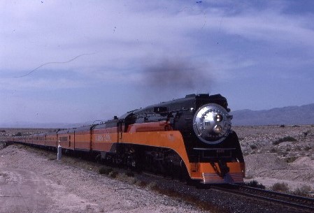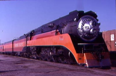 Present Day: In 1981, SP 4449 was returned to its original "Daylight" colors for the first Railfair at the California State Railroad Museum in Sacramento, California. In 1984, 4449 pulled an all Daylight-painted train from Portland to New Orleans, Louisiana and back, to publicize the World's Fair. The 7,477-mile round trip was the longest steam train excursion in US history. In 1986, 4449 went to Hollywood to appear in "Tough Guys", and pulled business trains for the Southern Pacific. No. 4449 had another famous moment in 1989 when 4449 and Union Pacific 844 made a side-by-side entrance into the Los Angeles Union Passenger Terminal in 1989 for the station's 50th anniversary celebrations. No. 4449 returned to Railfair in Sacramento in 1991 and again in 1999. In 2000, 4449 was repainted black and silver for a Burlington Northern Santa Fe employee appreciation special, then was repainted into the American Freedom Train colors again in early 2002 after the events of the September 11th terrorist attacks. In 2004, the locomotive was returned to Daylight colors again, this time in its "as delivered" appearance.