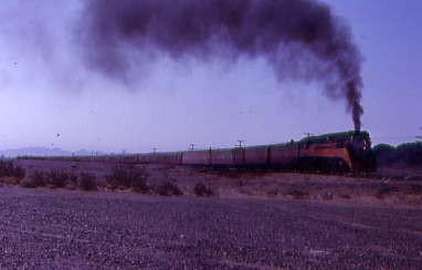In late spring, it was announced that Southern Pacific Daylight 4-8-4 4449 would pull an all-Daylight passenger consist from Portland to New Orleans, Louisiana for the World's Fair and was called the World's Fair Daylight. Tickets were sold for each of the train's daylight-running segments and my first choice was the two-day trip from Oakland to Los Angeles over the Tehachaphi Loop, but that was naturally extremely popular and almost sold out overnight. A two-day Phoenix-to-Los Angeles excursion on the train's return from Portland was then announced and since it covered the route over which that the Sunset Limited ran during the night, it seemed to be the perfect option for me. I called Mountain Outin Tours and the price included my Amtrak tickets to Phoenix and back from Los Angeles to Santa Ana, the 4449 west from Phoenix to Los Angeles and hotel, with transfer in Yuma.
