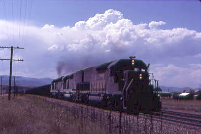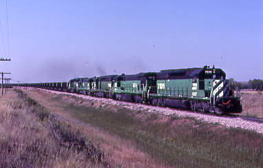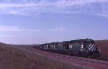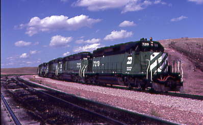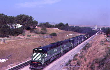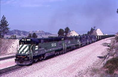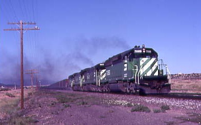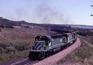 A little later, was the smoky Burlington Northern 8091 East cresting a little hill.