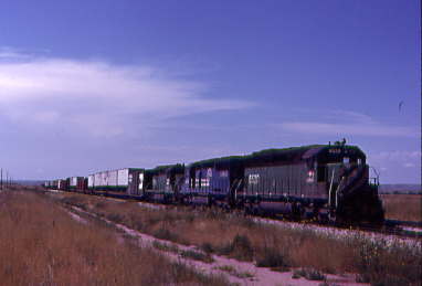 Further north, at Dwyer, we caught the local on the former Colorado Southern line from Wendover to Texline, Texas. From there we went to Guernsey and continued west.