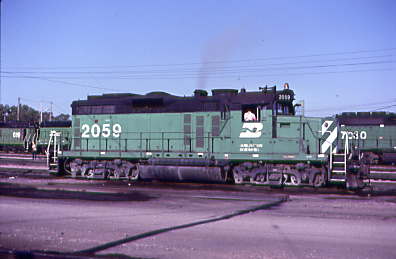 Here we found Burlington Northern GP20 2059, nee Chicago, Burlington and Quincy 923, built by Electro-Motive Division in 1961.