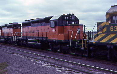 A nicely painted Milwaukee Road SD40-2 142, nee Milwaukee Road 3012, built by Electro-Motive Division in 1972, in their new Hiawatha paint scheme. This became Kansas City Southern De Mexico 1424.