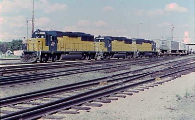 On another train was Chicago and North Western SD40-2 6922, built by Electro-Motive Division in 1975. It later became Union Pacific 3085 and then Union Pacific SD40N 1919. Note the Falcon Service paint scheme, one of only two locomotives to be painted this way. Falcon Service was the moniker given to the railroad's high-speed piggyback service from the west coast to Chicago, which started in 1973 and lasted until the mid-1980's.