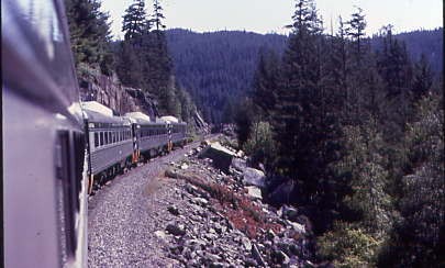 The train twisted and turned on its way up the narrow rocky gorge. The ride in the vestibule was incredible and the conductor came back to see how we were enjoying the ride, noting my camera. We crossed the bridge on which the RDCs were pictured on a Pacific Great Eastern timetable and it was that picture that drew me to this railway, and at this moment, I was crossing that bridge. It was an incredible feeling to live out one of my life's dreams.