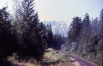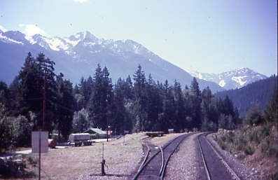 Mount Currie, 8,500 feet at MP 99.4. From Birken, MP 112.6, we descended the grade to D'Arcy.