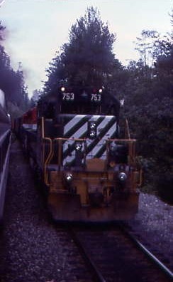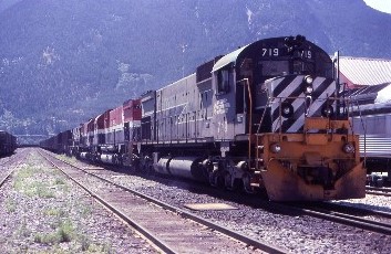 BCOL SD40-2 754 at Pemberton on a helper set.