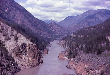 South of Exeter, we crossed over the tracks and came upon the derailment site. It was a mess with cars strung about the right-of-way and piled up and was an amazing sight. We headed away from the tracks on a nice two-lane highway which we stayed on until Cache Creek then turning west, the road twisted and turned to get up to the divide that leads to the Fraser River Canyon, which we crossed, and ten minutes later, were ducking under the BC Rail tracks. With the river on the right below and the tracks slightly above on the left, this arrangement continued until the tracks bridged us before they cross the Fraser River and further downstream, we crossed the river and arrived in Lillooet.