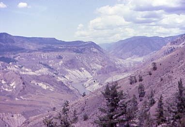 Continuing the climb out of the canyon near Fountain, MP 165.3, during which we would ascend 3,000 feet over the next thirty miles to gain access to the Cariboo Plateau, a volcanic plateau in south-central British Columbia. It is part of the Fraser Plateau which is a northward extension of the North American Plateau. Its southern limit is the Bonaparte River although some definitions include the Bonaparte Plateau between that river and the Thompson, but it properly is a subdivision of the Thompson Plateau. The portion of the Fraser Plateau west of the Fraser River is properly known as the Chilcotin Plateau, but is often mistakenly considered to be part of the Cariboo Plateau, which is east of the Fraser.