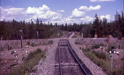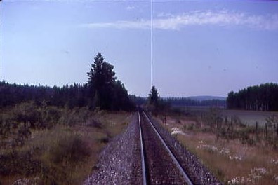 As we sped along, we went throught Lone Butte and passed the old water tower which still stood. Just before Horse Lake, we passed the highest elevation on the railway at 3,864 feet, then with Highway 97 very close to the tracks, a log truck cut in front of our train and for the next five minutes, the dangers of railroading were discussed. My engineer had had a lot of close calls but never hit anything. I told a few San Diegan stories and he was very glad that he worked in British Columbia away from all of the lunatics in Southern California; his points were well taken. We discussed wildlife and there was large variety seen here in the Cariboo. The conversation then turned to winter railroading and he ensured me that operating RDCs in winter takes a little more concentration but is fun year-round.