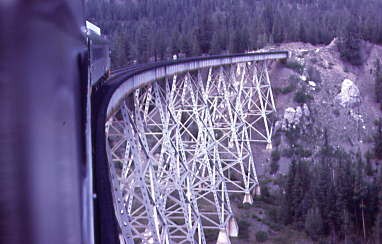 The new engineer and I got to know each other and after chatting for twenty minutes, he advised me to be ready with my camera as we came out of a curve and made our way onto the Deep Creek Bridge over Hawks Creek, MP 330. At 312 feet high and over 1,200 feet long, this was the highest bridge in the British Empire when constructed in 1920 by the Canadian Bridge Company. It was the highest bridge that I had been over and was very glad not to be afraid of heights. Two words described the bridge and our crossing - totally awesome!