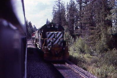 The meet with Train 2 from Prince George, our southbound counterpart, after which I returned to my seat to change film, then wondering if it would be possible to ride in the front of the RDC with the engineer, I walked through the galley and the baggage compartment into the control area, where I was greeted warmly and offered the fireman's seat. I accepted that and was told they would arrange for me to stay here all the way to Prince George and I was naturally in heaven.