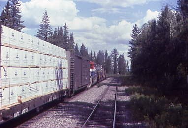 We switched crews and I was greeted with "How did you like your present, eh?" and I responded "Fantastic, eh!" and off we went towards Williams Lake. Just south of Quesnel, we passed a northbound freight but it was just the cars from Williams Lake staying on their schedule and going north. My engineer reminded me that they had to keep freight moving on both sides of a derailment or money will be lost if the railway shuts down, then our conversation turned to BC Rail's future and the exporting of coal from the Tumbler Ridge line to Japan.