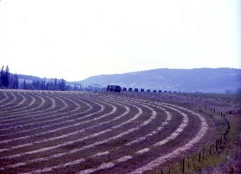 The rails hugged the east wall of the canyon as the RDC twisted and turned to gain elevation. Across the river it was odd to see irrigated fields but I learnt that the medicinal plant and herbal remedy, ginseng, was grown here. The view was spectacular as we continued to climb and was similar to view from an aeroplane. We came to Pavilion at MP 177.9, where we passed a freight train waiting in the siding and I was really impressed how BC Rail runs their railway.